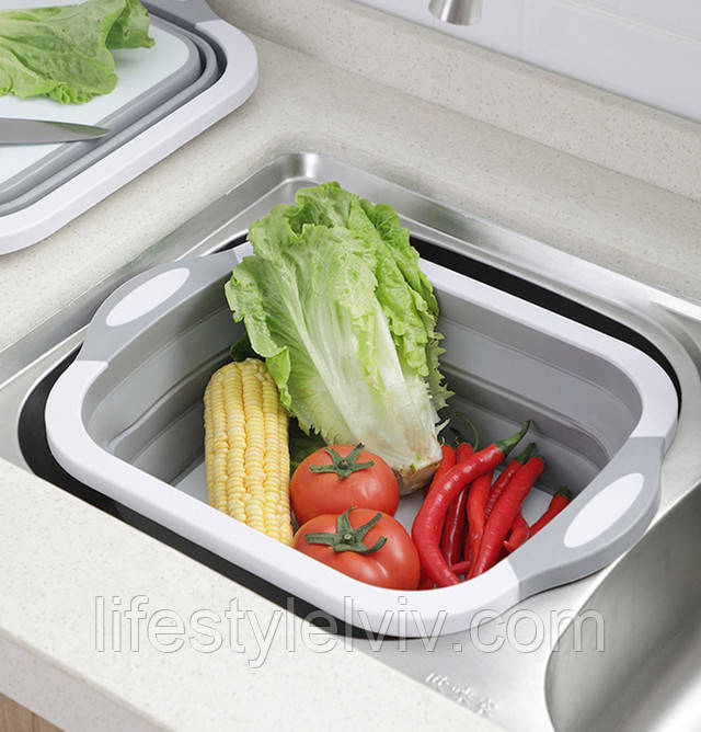 Складна дошка обробна Chopping Board 3 в 1 / Обробна дошка трансформер / Дошка кухонна Біло-сіра