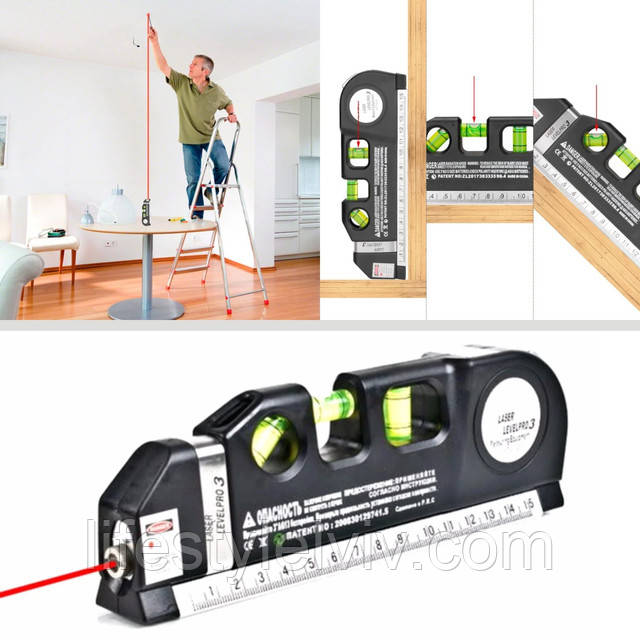 Лазерний нівелір LASER LEVEL PRO3 / Рівень лазерний з рулеткою 4 в 1