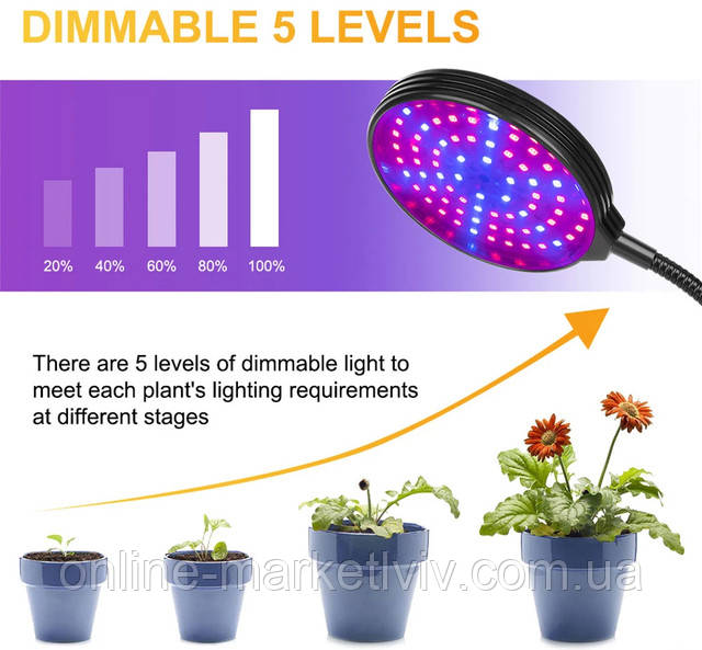 Ультрафіолетова лампа для рослин R1 (1 головка 15w) / Гнучка настільна фітолампа