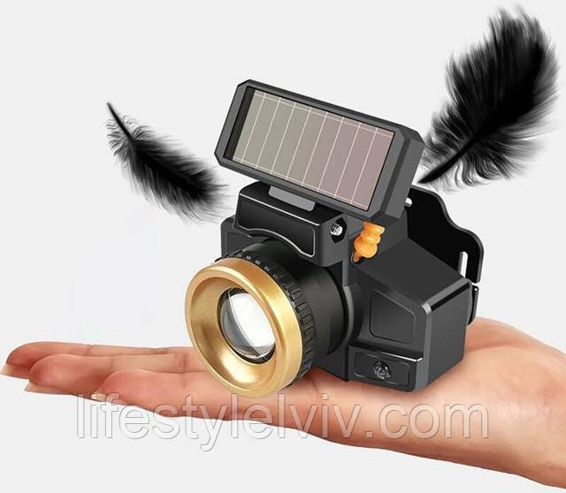 Налобний ліхтар із сонячною батареєю та датчиком руху / Ліхтарик світлодіодний на акумуляторі