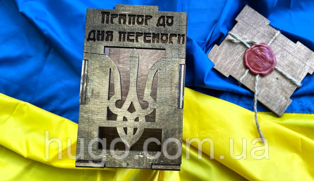 Підніміть свій національний дух із цим чудовим Прапором України, представленим у вишуканій сувенірній дерев'яній коробочці з унікальним гравіюванням.