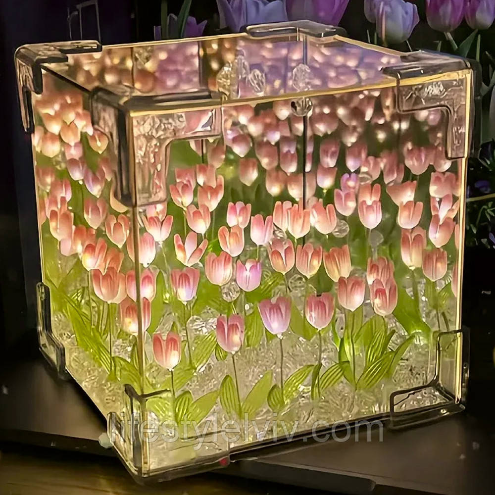 Пориньте у світ чарівництва з нічником "Безкінечні тюльпани"! Вишуканий дизайн, м'яке світло і ефект нескінченності, що зачаровує, перетворить ваш будинок!